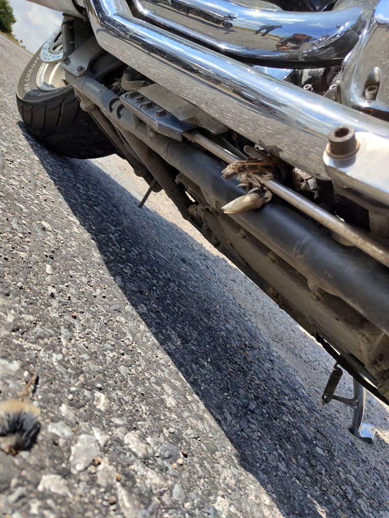 Die restliche Strecke zur bulgarischen Grenze war recht eintönig. Fast nur Felder links und rechts der Straße. Also Gas geben und Istanbul weit hinter und liegen lassen. Circa 20 Kilometer vor Bulgarien stoppten wir nochmal für eine kleine Pinkelpause und entdeckten dabei den blinden Passagier an Papas Motorrad. Ein kleiner Vogel hatte es sich (vermutlich schon seit zwei Tagen) zwischen Bremsgestänge und Rahmen ungemütlich gemacht. Leider war dieser nun nicht mehr ganz so fit und ich musste ihm beim Verlassen des Fahrzeugs etwas behilflich sein.