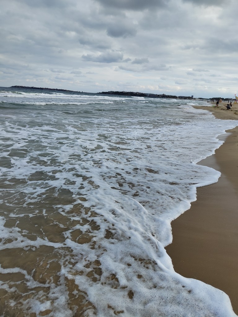 Aufgrund des hohen Wellengangs wurde uns das Baden, aber leider untersagt. Somit sind wir nur mal schnell reingesprungen, bis uns der Bademeister nach 5 Sekunden wieder rausbeordert hat…